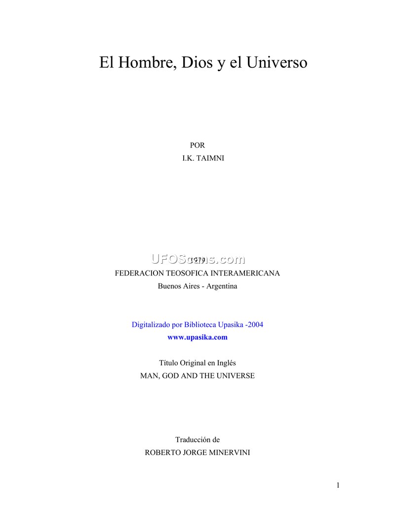 This document, titled 'El Hombre, Dios y el Universo' (Man, God and the Universe) by I.K. Taimni, published in 1979 by the Inter-American Theosophical Federation, presents a philosophical and occult exploration of the fundamental mysteries of existence. The author, a former chemistry professor at the University of Allahabad, seeks to bridge the gap between materialist science and spiritual philosophy. Taimni argues that the materialist view, which reduces man to an accidental intruder in a hostile universe, is incomplete and dangerous. He proposes that a true understanding of the universe requires an 'integral approach' that synthesizes religion, philosophy, and science. The text posits that the universe is not a random collection of atoms but a manifestation of a central, ultimate Reality. Taimni explores concepts such as the Absolute (Parabrahman), the Cosmic Logos, and the nature of consciousness. He discusses the 'Cosmic Rhythm' as a dynamic oscillation between manifestation and dissolution (Srishti and Pralaya), suggesting that this process is automatic and inherent in the nature of the Absolute. The author emphasizes the importance of the 'Occult' method, which he defines as a systematic investigation combining religious, philosophical, and scientific methods to penetrate the deeper mysteries of life. He argues that the 'Occult' is not synonymous with superstition but is a 'Sacred Science' based on the direct experience of great Adepts. The book delves into the nature of the Monad, the Logos, and the relationship between the individual soul (Jivatma) and the Universal Spirit (Paramatma). Taimni uses mathematical analogies, such as the properties of zero and infinity, to illustrate complex metaphysical concepts. He discusses the 'Great Illusion' (Maya) as the fundamental mechanism through which the Absolute manifests as a differentiated universe. The author concludes that the ultimate goal of human evolution is the realization of one's divine nature and the transcendence of the limitations imposed by the material world. He advocates for a shift in perspective, moving from a purely intellectual understanding to a direct, intuitive realization of the underlying unity of all existence. The text serves as a guide for the serious seeker, providing an intellectual framework to prepare for the 'divine adventure' of self-discovery.
