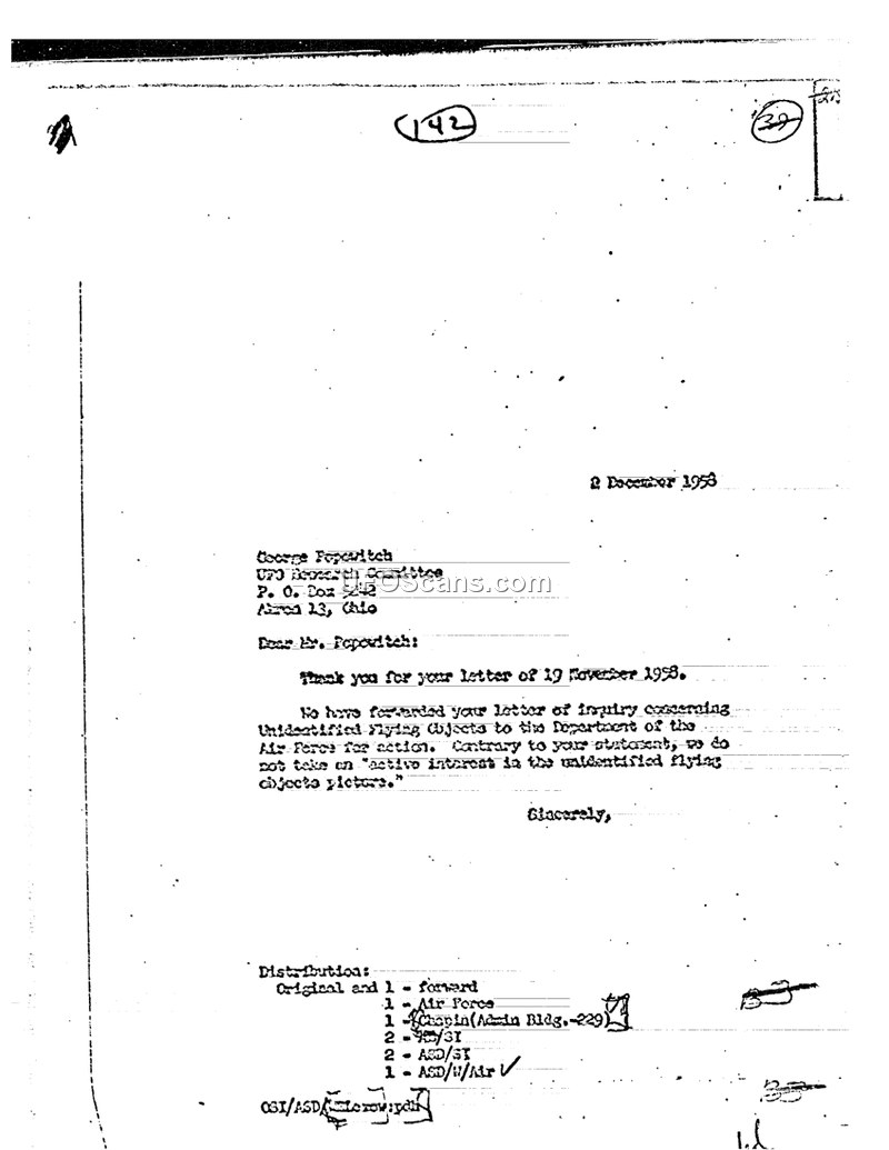 Correspondence to George Popevitch regarding UFO Research Committee inquiry
