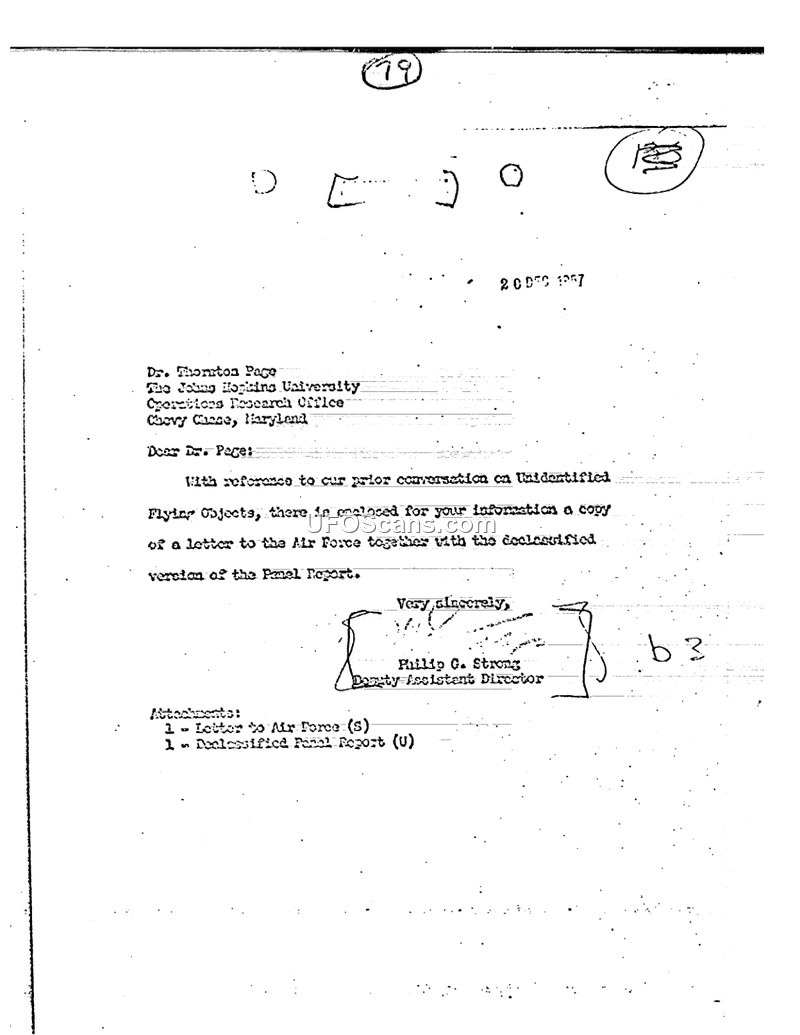 Correspondence to Dr. Thornton Page regarding Unidentified Flying Objects