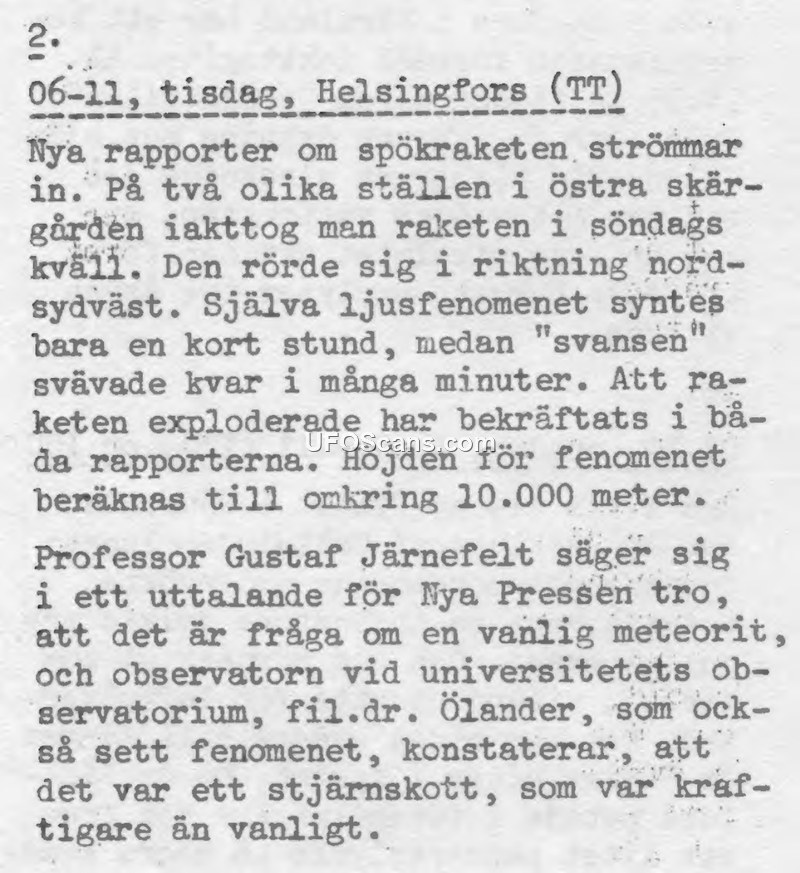 06-11, tisdag, Helsingfors (TT) - Ghost Rocket Sighting Report