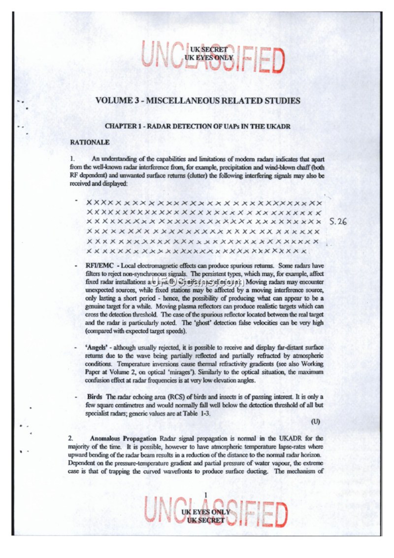 VOLUME 3 - MISCELLANEOUS RELATED STUDIES: CHAPTER 1 - RADAR DETECTION OF UAPs IN THE UKADR