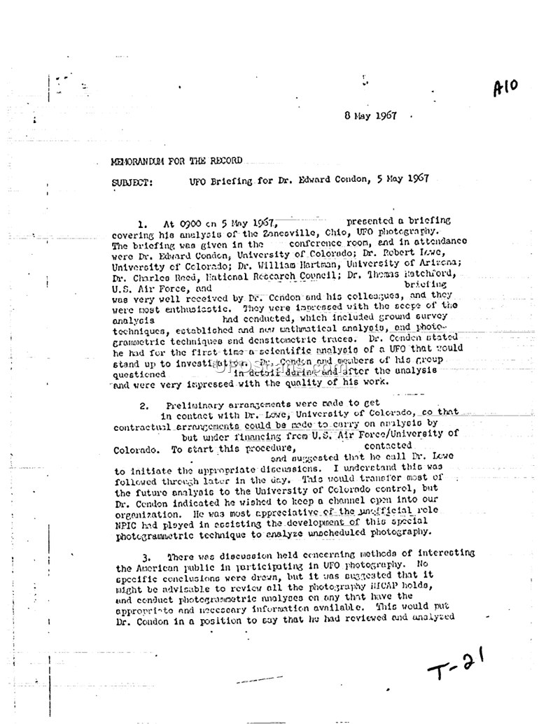 UFO Briefing for Dr. Edward Condon, 5 May 1967