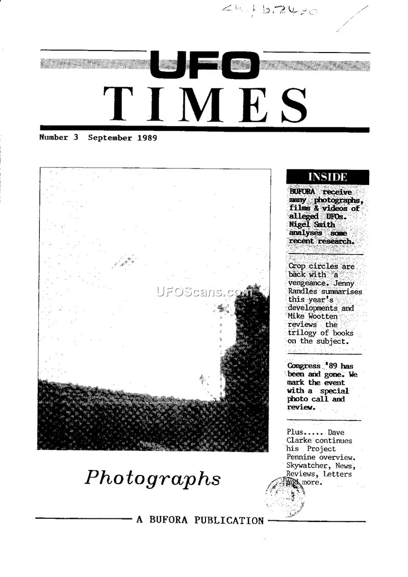UFO Times Number 3, published in September 1989 by the British UFO Research Association (BUFORA), serves as a comprehensive update on the state of UFO and UAP research in Britain. The issue highlights the organization's commitment to scientific rigor, particularly in response to the surge in media attention surrounding crop circles. Chairman Steve Gamble outlines the organization's future, including plans for a central headquarters, a library, and the pursuit of charitable status to ensure long-term financial stability. A significant portion of the publication is dedicated to the 5th London International UFO Congress, where speakers like Walt Andrus of MUFON presented on the Gulf Breeze case, which BUFORA researchers view with significant skepticism. The issue also features technical discussions on photographic analysis, with Nigel Smith detailing the challenges of evaluating photographic evidence and the high frequency of hoaxes or misidentified phenomena. Harry Harris provides a technical review of video footage from the M1 motorway, concluding that the objects were astronomical in nature. Dave Clarke continues his 'Project Pennine' series, exploring the relationship between geological faulting and luminous phenomena, suggesting that many reported sightings may be geophysical in origin rather than extraterrestrial. The publication also includes reviews of recent literature, such as Paul Devereux's 'Earthlights Revelation' and books on crop circles, reinforcing the association's stance against uncritical acceptance of 'nuts and bolts' extraterrestrial theories. The issue concludes with a 'Stop Press' report on a alleged RAF Tornado dogfight with a UFO over Blackpool, indicating that investigations are ongoing. Throughout the document, the editorial tone is one of professional skepticism, emphasizing the need for evidence-based research and the importance of maintaining credibility within the international scientific community.