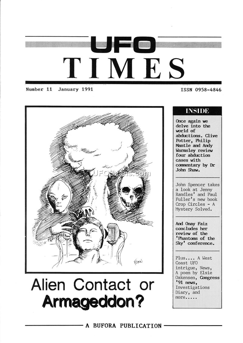 This January 1991 issue of UFO Times documents the British UFO Research Association's efforts to modernize its investigative approach, emphasizing scientific rigor over traditional alien-centric hypotheses. It features case studies of alleged contact, reports on the 'Phantoms of the Sky' conference, and critical analysis of the Gulf Breeze and crop circle phenomena.