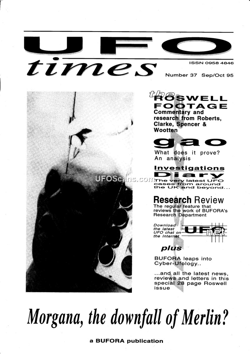 This issue of UFO Times (Number 37, Sep/Oct 1995) serves as a central record of the British UFO Research Association's (BUFORA) involvement with the controversial 'Roswell footage' provided by Ray Santilli. The editorial by Mike Wootten defends BUFORA against criticism regarding its handling of the footage, acknowledging that the organization was used as a marketing tool but maintaining that their intentions were to facilitate scientific analysis. The magazine features critical commentary from Andy Roberts and Dave Clarke, who argue that the footage is a hoax and that BUFORA failed in its investigative duties by allowing itself to be manipulated by commercial interests. The issue also covers the launch of 'BUFORA On-Line' in partnership with Eclipse Internet Solutions, marking the organization's entry into 'cyber-ufology'. Several investigation reports are included, detailing sightings in the UK and abroad, including triangular objects in Glastonbury and a luminous object near Bariloche airport in Argentina. A section on the US General Accounting Office (GAO) report regarding the 1947 Roswell incident is provided, noting that while the GAO found no evidence of a crashed disc, it revealed that military records were destroyed without proper procedure. The magazine also includes obituaries, such as that of William Francis Brinsley Le Poer Trench, and reports on the 8th BUFORA International UFO Congress held in Sheffield, which featured speakers from around the world and the first public screening of the Santilli autopsy film. The publication maintains an open forum for diverse opinions on these events, despite the internal and external tensions surrounding the authenticity of the Roswell materials.