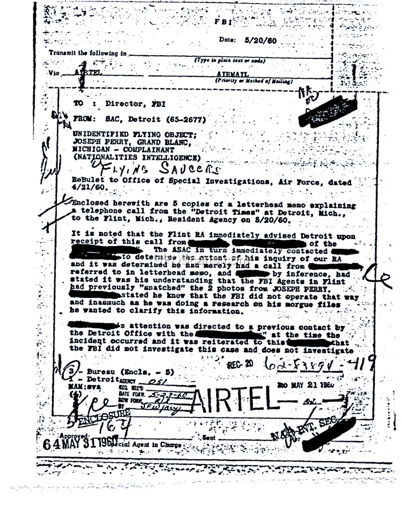 FBI Correspondence and Memoranda Regarding Unidentified Flying Objects (UFOs) and Flying Saucers (1957-1977)