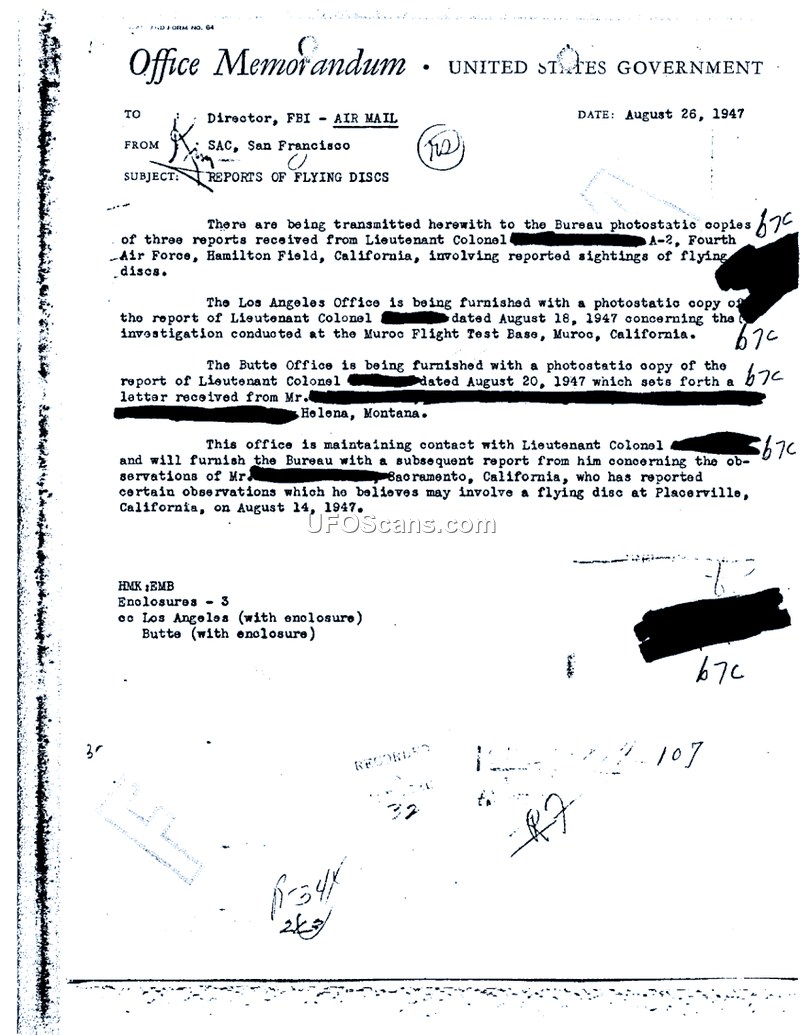 Reports of flying discs at Muroc were investigated by the Fourth Air Force and deemed to require no further action. Other reports, such as the Maury Island incident, were investigated by the FBI and determined to be a hoax.