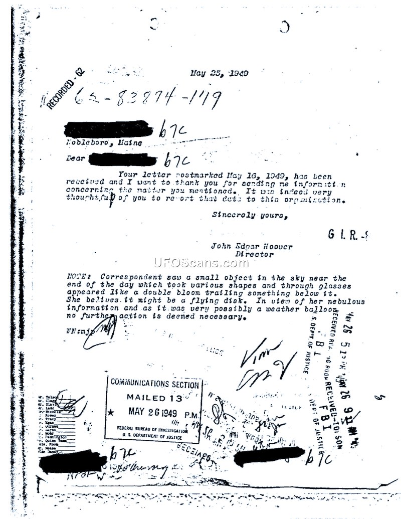 Many reported sightings were attributed to weather balloons, model kites, or man-made missiles. The FBI maintained a policy of not investigating these reports, referring them instead to the Air Force.