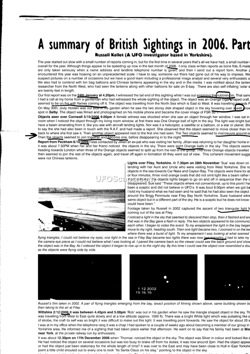This issue of Flying Saucer Review (Autumn 2006) compiles various international UFO sighting reports and theoretical articles on dimensional phenomena. It includes witness testimonies from the UK, Argentina, and Russia, alongside discussions on gravity fields and abduction experiences.