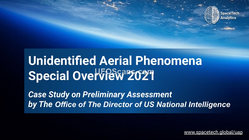 This document, titled 'Unidentified Aerial Phenomena Special Overview 2021,' is a case study produced by SpaceTech Analytics. It serves as an analysis of the 'Preliminary Assessment: Unidentified Aerial Phenomena' report published by the Office of the Director of National Intelligence (ODNI) on June 25, 2021. The overview contextualizes the ODNI report, which acknowledged 144 unresolved UAP-related incidents reported between 2004 and 2021. The document argues that the publication of the ODNI report marks a significant shift in the global landscape regarding UAP, moving the subject from the fringes into mainstream scientific and governmental discourse. It emphasizes that the UAP phenomenon is not unique to the United States and suggests that the official acknowledgment by the US government will trigger similar reporting and research efforts in other nations. The overview details the establishment of the Unidentified Aerial Phenomena Task Force (UAPTF) and its mission to detect, analyze, and catalog UAPs that may pose threats to US national security. It discusses the challenges of data collection, noting that current sensors are often designed for specific missions rather than UAP detection, leading to data limitations and inconsistencies. The document advocates for increased investment in research and development, specifically mentioning programs like SMART and CORE3D, and the potential for advanced technologies such as artificial intelligence and machine learning to improve data analysis. Furthermore, the document presents a risk framework, categorizing potential threats into security-driven, economic-driven, biologically-driven, and technologically-driven categories. These include risks such as false warnings of military systems, cyberattacks, stock market panic, and the diversion of resources from other critical technological advancements. The document also explores the broader context of space exploration, including SETI and METI initiatives, and the role of small satellites in future UAP monitoring. It concludes that the future of UAP research requires international collaboration, standardized reporting, and the integration of advanced DeepTech solutions to effectively address the challenges posed by these phenomena.