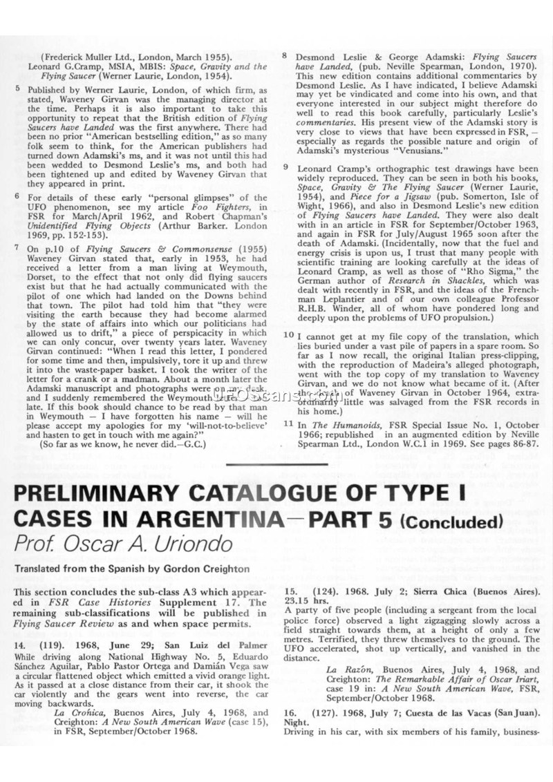 Flying Saucer Review: Preliminary Catalogue of Type I Cases in Argentina – Part 5 and Readers' Reports