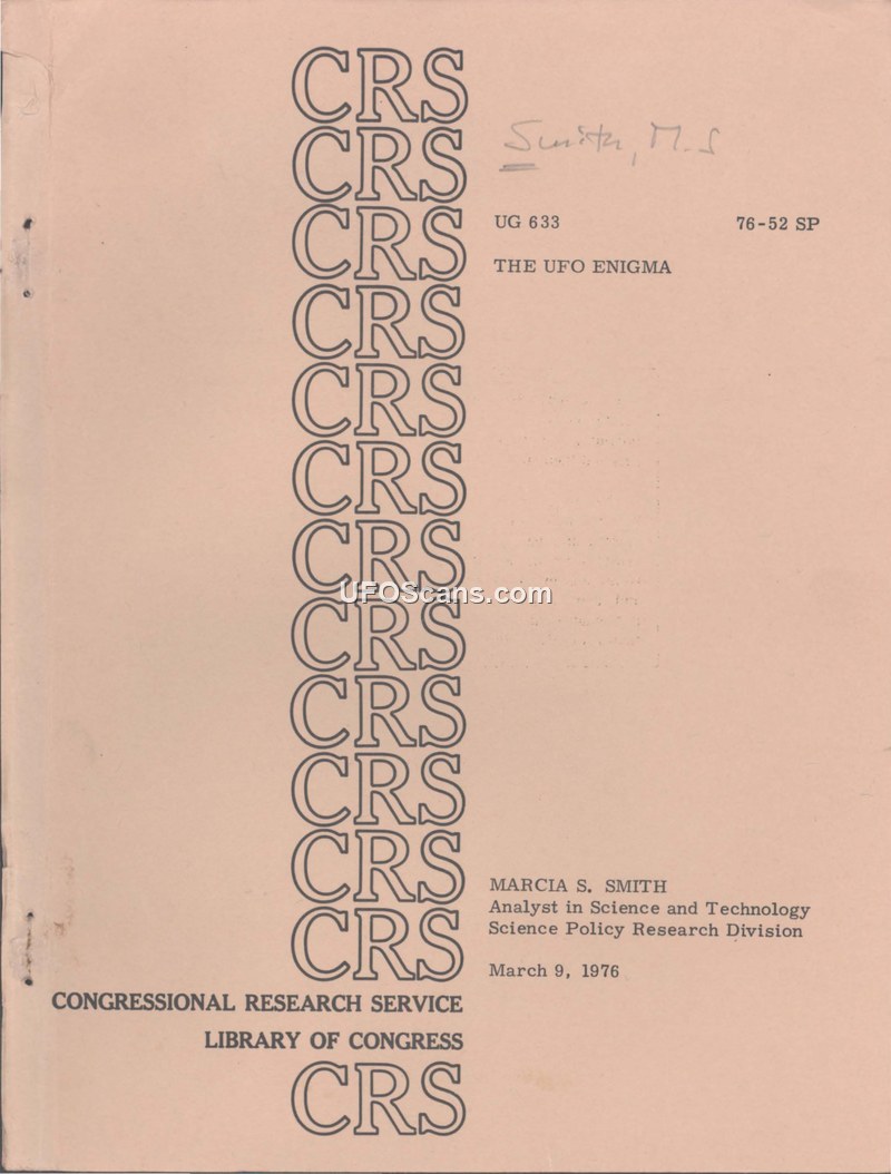 This report, titled 'The UFO Enigma' and authored by Marcia S. Smith of the Congressional Research Service, provides a detailed overview of the Unidentified Flying Object (UFO) phenomenon as of March 1976. The document serves as a reference for the U.S. Congress, outlining the history, scientific debate, and government involvement regarding UFOs. The report begins by defining UFOs and discussing the challenges of witness credibility, noting that sociologists and psychologists have studied the factors affecting the reliability of reports. It highlights the 'Strangeness-Probability' curve devised by J. Allen Hynek as a method for identifying high-probability cases. A significant portion of the report is dedicated to the history of U.S. government involvement, specifically the U.S. Air Force's projects: Sign, Grudge, and Blue Book. The report details the transition from initial concern over national security to a policy of debunking and public relations, culminating in the Condon Report (1969), which concluded that further study of UFOs was not justified. The document also covers the role of private organizations such as APRO, NICAP, CUFOS, and MUFON, which became the primary entities for reporting and investigating sightings after the termination of Project Blue Book. The report includes summaries of selected cases, such as the 1947 Kenneth Arnold sighting, the 1952 Washington, D.C. radar sightings, and the 1973 Pascagoula abduction incident. Additionally, it addresses peripheral topics like 'ancient astronauts' and the Bermuda Triangle, noting their inclusion due to their association with alien visitation theories. The report concludes that while the controversy persists, there is a lack of hard-core scientific data. It suggests that future research should focus on increasing physical evidence and utilizing computer analysis to identify patterns, while acknowledging that the scientific community remains deeply divided on the subject.
