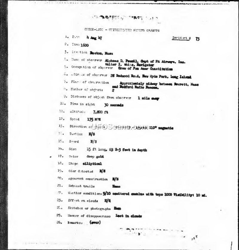 Summary of Information: Unidentified Flying Objects (1947-1948)