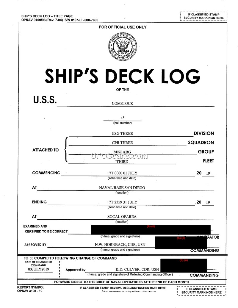 Ship's Deck Log of the U.S.S. Comstock (LSD 45), 01 July 2019 – 31 July 2019