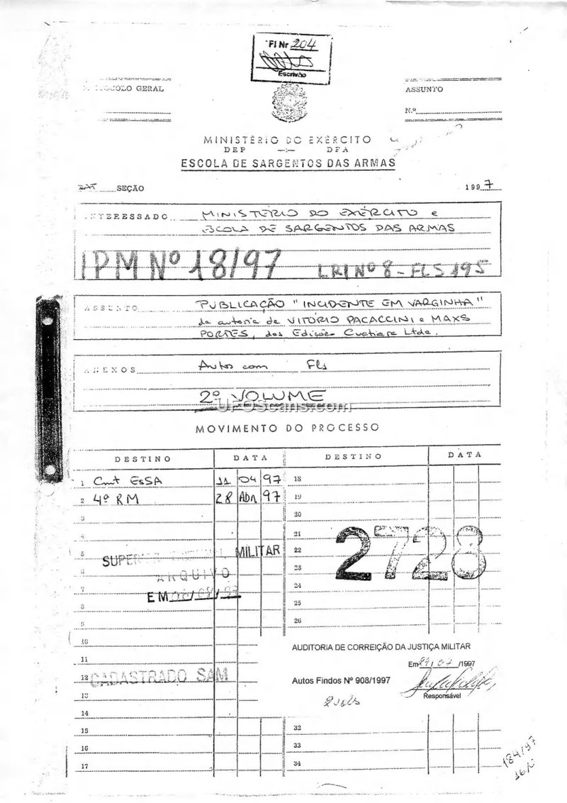 2nd Volume of the Military Police Inquiry (IPM) No. 18/97 - Varginha Incident