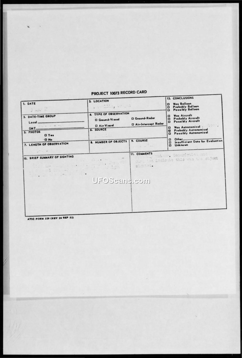 Project 10073 Record Card and Sighting Report - Corvallis, Oregon, April 1961