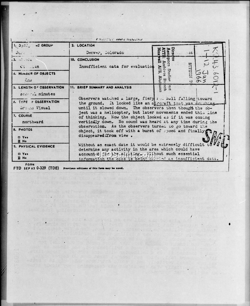 Project Blue Book Sighting Report — Denver, Colorado, June 1966