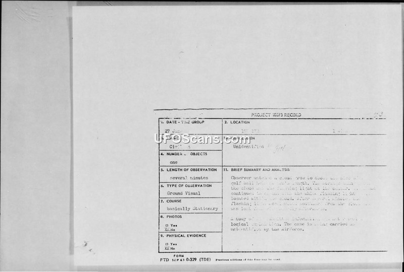 The Air Force could not provide a positive identification of the sighting, noting it was a striking and unusual phenomenon.