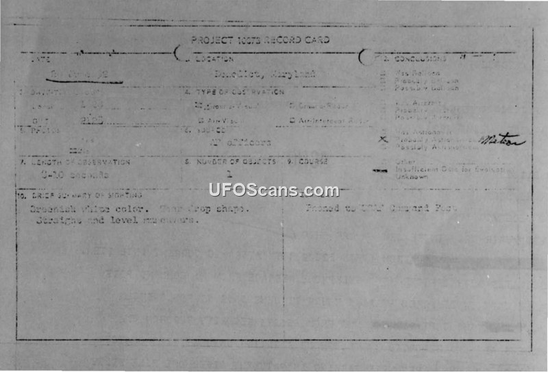 Project 10073 Record Card — Benedict, Maryland, 21 June 1952