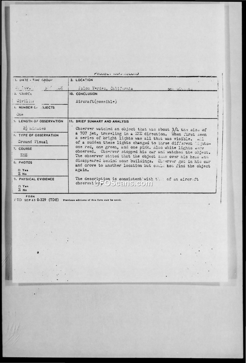 Project 10073 Record — Palos Verdes, California, November 29, 1966