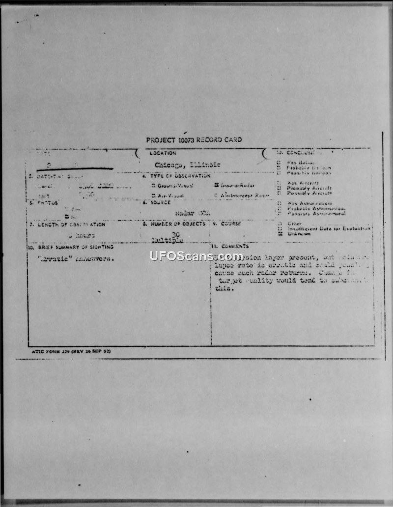 Report of Unusual Radar Indications — Chicago, Illinois, September 1952