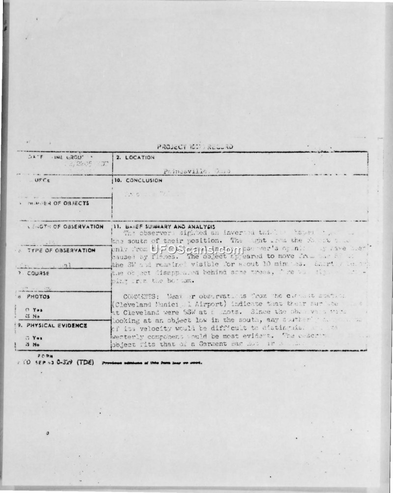 UFO Observation Report — Painesville, Ohio, July 22, 1969