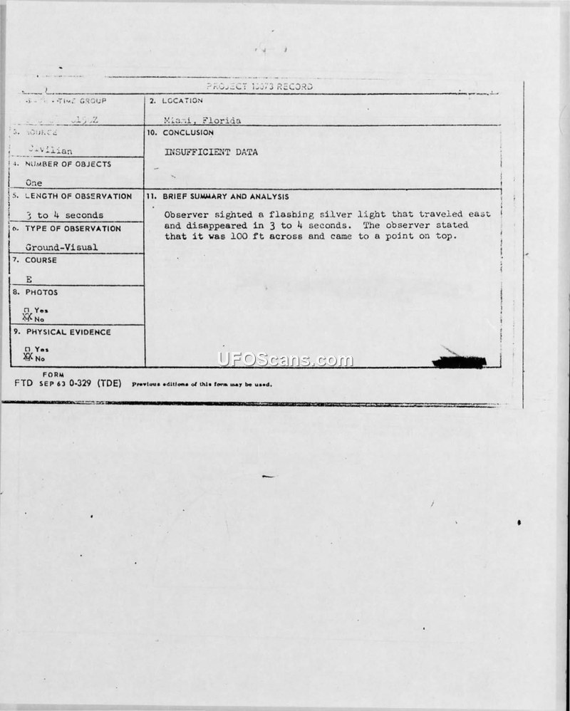 The initial report from a civilian in Miami was deemed insufficient. A subsequent, similar report from an Army Warrant Officer in Key Largo described three objects with blinking lights and a humming sound.
