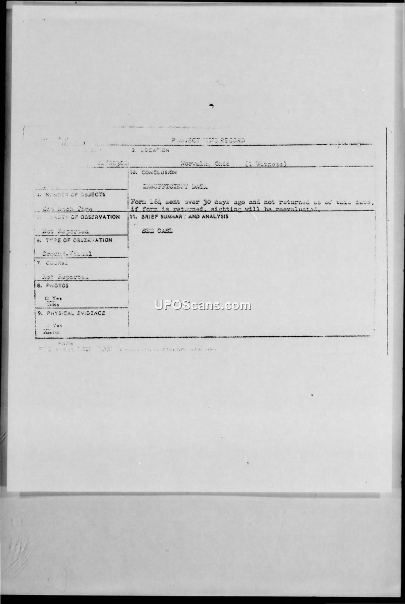 The Air Force determined that the information provided by the witness was insufficient for a scientific evaluation and requested the completion of FTD Form 164.