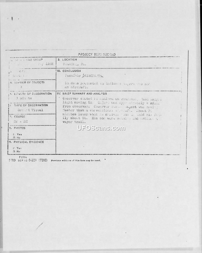 Project Blue Book Records and Correspondence - April 1967