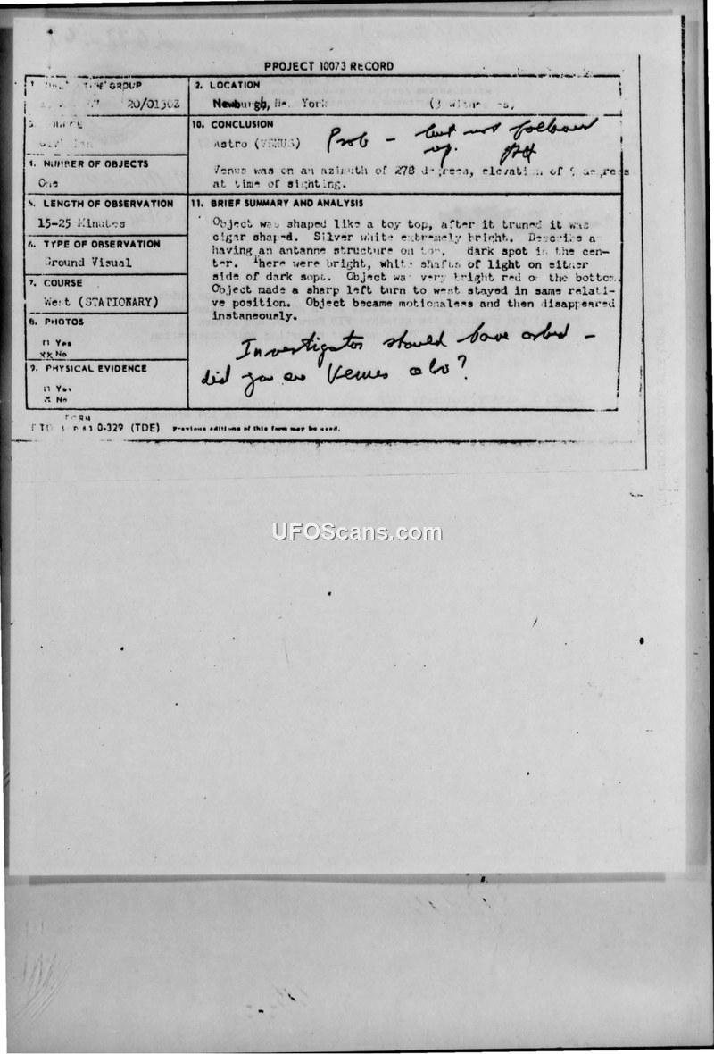 Project 10073 Record — Newburgh, New York, 20 March 1967