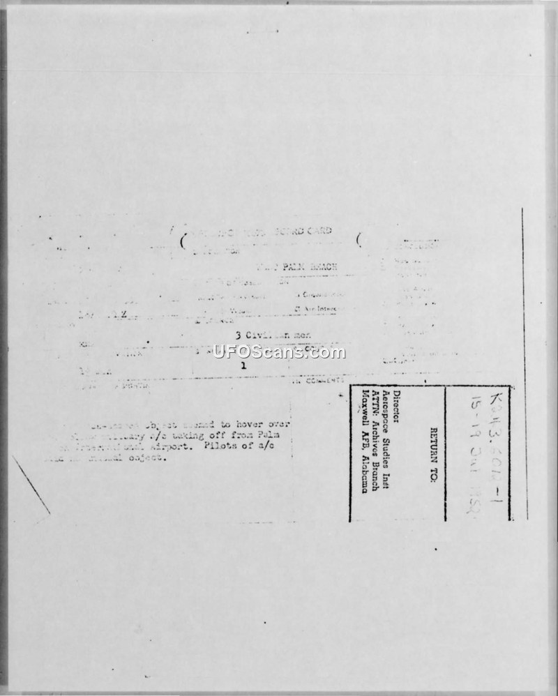 Incident Report: Unidentified Aerial Phenomena - West Palm Beach, Florida, 15 July 1952