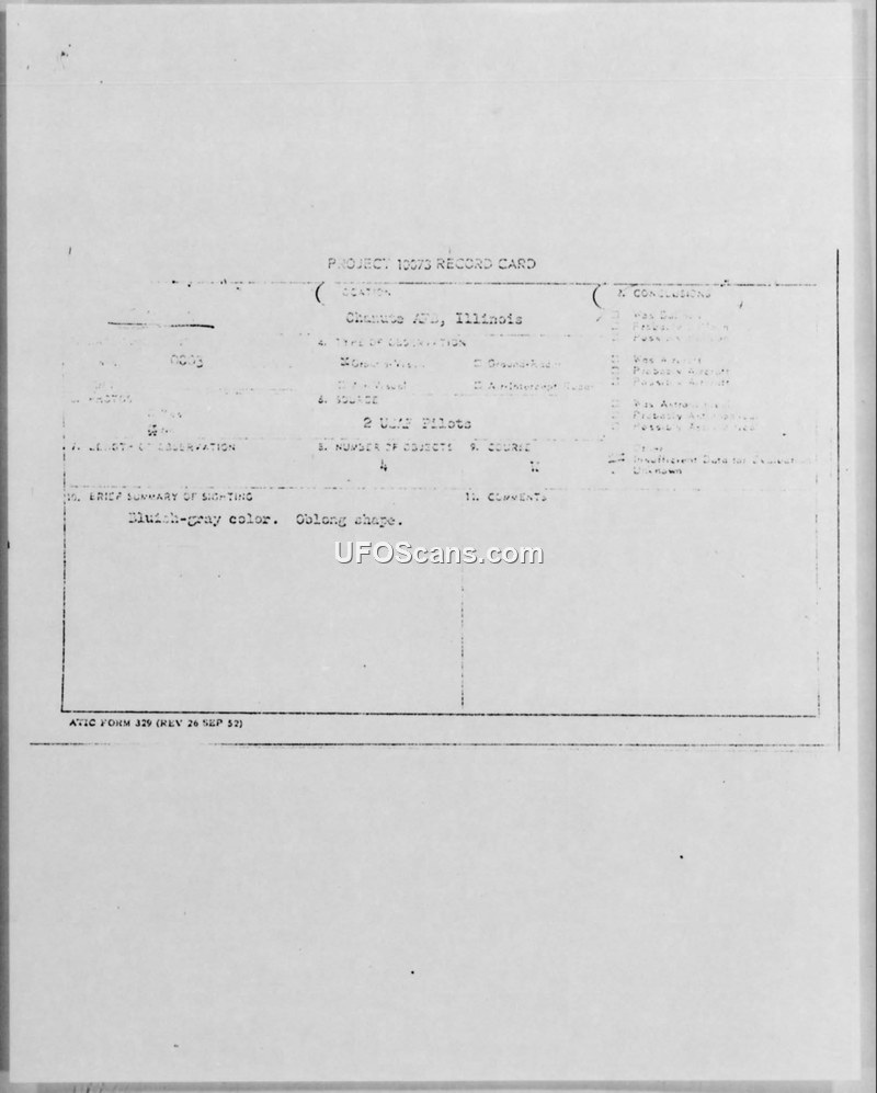 Project 10073 Record Card and Air Intelligence Information Report — Chanute AFB, Illinois, August 1952