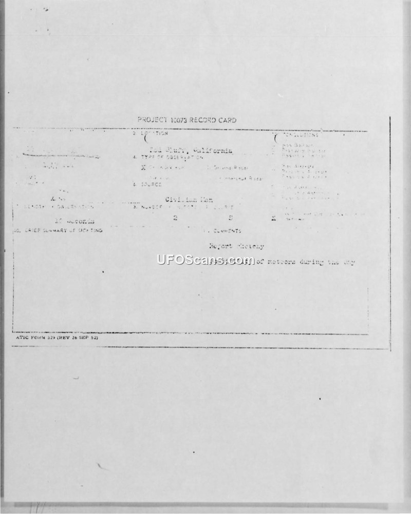Project 10073 Record Card and Sighting Report — Red Bluff, California, August 19, 1952