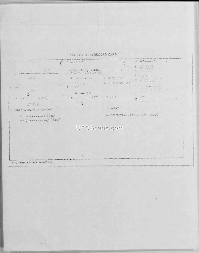 Project 10073 Record Card and Air Intelligence Information Report — 19 August 1952