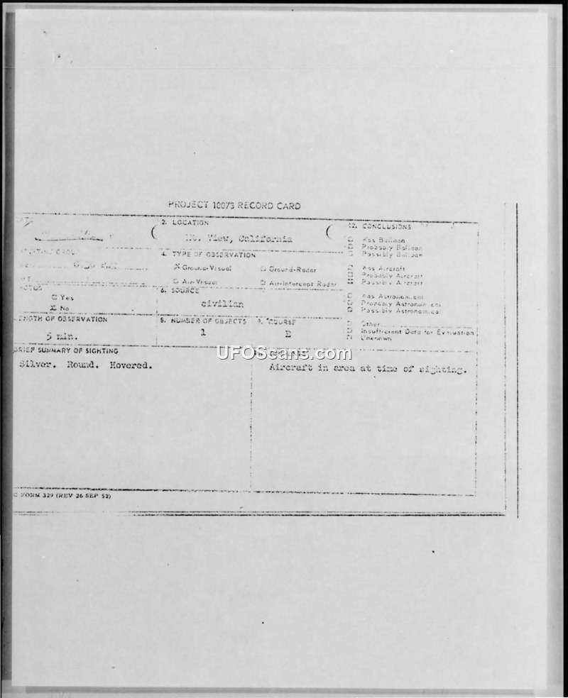 Project 10073 Record Card and Air Intelligence Information Report — Navarre, Minnesota, 23 August 1952