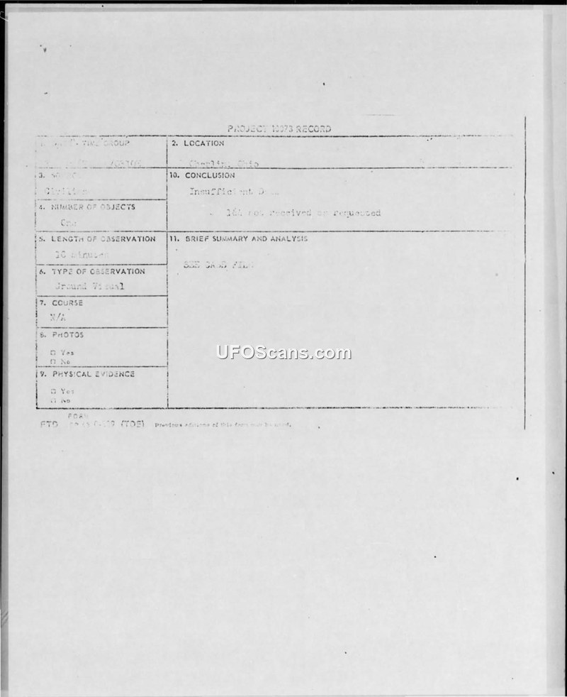 Project 10073 Record — Oberlin, Ohio, 3 May 1967