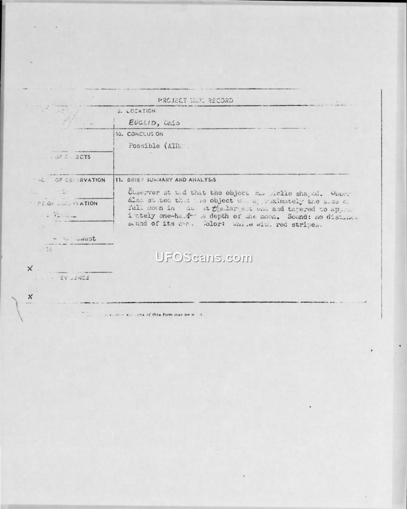 Project Blue Book Sighting Report — Euclid, Ohio, May 4, 1967