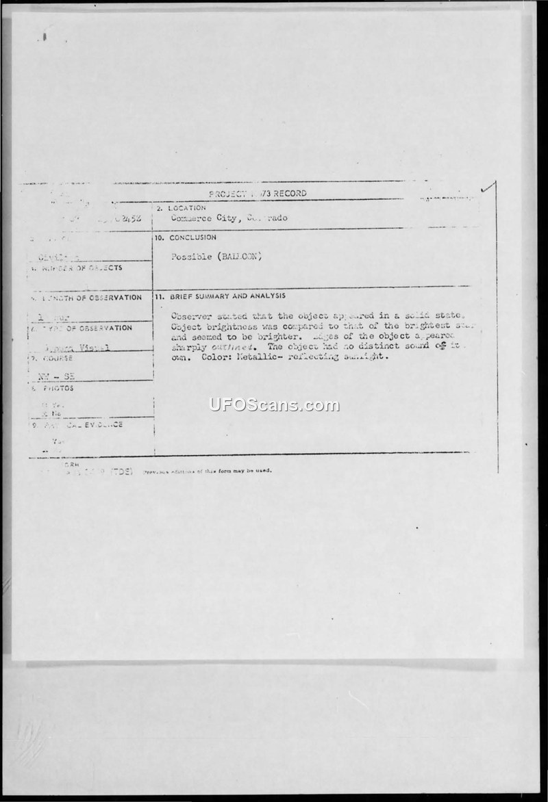 Two witnesses in Commerce City, Colorado, reported a metallic, tuna-can-shaped object on May 22, 1967. The Air Force officially classified the incident as a possible weather balloon.